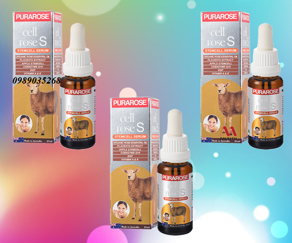 Serum nhau thai cừu Purarose Cell Rose S Stemcell Serum của Úc. Serum nhau thai cừu Purarose chiết xuất từ các dưỡng chất chống lão hóa từ thiên nhiên giúp phục hồi làn da đang bị lão hóa, kích thích tái tạo làn da mới tươi trẻ, căng mịn, trắng sáng hơn mỗi ngày.