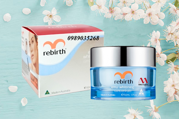 Kem dưỡng trắng da đà điểu Rebirth Emu Whitening Concentrate hoàn toàn thiên nhiên, không gây kích ứng, thích hợp cho mọi loại da để dưỡng trắng da tự nhiên, xóa mờ thâm nám, nếp nhăn và chống lão hóa.