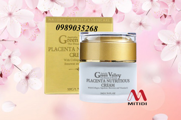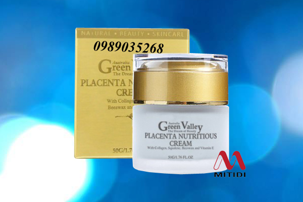 Kem nhau thai cừu Green Valley Placenta Nutritious Cream của Úc. Dùng kem dưỡng da hằng ngày rất tốt để chống lão hóa, trị thâm nám, tàn nhang, làm trắng da, dưỡng ẩm cho làn da mịn màng, trắng hồng và tươi trẻ dài lâu.
