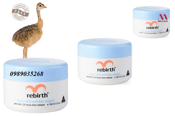 Chia sẻ bí quyết giúp đảo ngược lão hóa từ Kem chống lão hóa tinh dầu đà điểu Rebirth Emu Anti-Wrinkle. Là dòng mỹ phẩm chuyên đặc trị chống lão hóa cho da, xóa bỏ nếp nhăn, cải thiện độ đàn hồi cho da, giúp da se khít lỗ chân lông, da căng mịn với thành phần chính từ tinh chất đà điểu EMU quý giá và AHA trái cây.