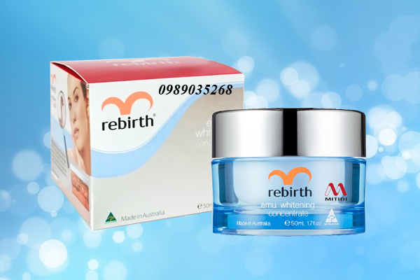 Kem Rebirth Emu Whitening Concentrate chiết xuất từ tinh dầu đà điểu của Úc. Là dòng kem dưỡng trắng da ban đêm được chị em yêu thích giúp dưỡng ẩm, làm trắng da an toàn và chống lão hóa, hỗ trợ điều trị da sần sùi, sạm nám, nếp nhăn,… mang lại làn da mịn màng, săn chắc và trắng sáng.