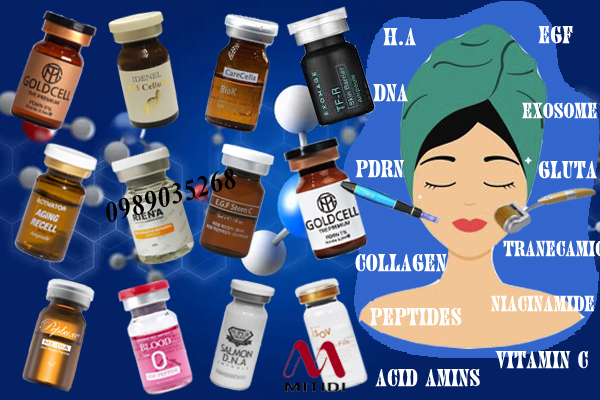 Một trong những sản phẩm serum tế bào gốc dùng trong điều trị lăn kim mà các chuyên gia khuyên dùng là tế bào gốc nhau thai cừu, tế bào gốc collagen, tế bào gốc mô mỡ, tế bào gốc thần kinh, tế bào gốc thực vật, cá hồi PDRN, Hyraluronic acid, Gluthathion, Niacinamide, Huyết tương, Albutin, Vitamin, Peptide, Exosome ... để trị nám tàn nhang, đốm nâu, da xỉn màu, làm trắng da, trị nếp nhăn, trẻ hóa da, trị mụn, trị sẹo rỗ, sẹo thâm, lỗ chân lông, rạn da...