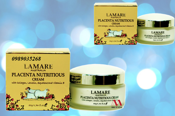Kem Lamare nhau thai cừu Úc Placenta Nutritious Cream hoàn toàn thiên nhiên. Sản phẩm kem Lamare nhau thai cừu Úc dùng dưỡng trắng da, làm mờ nám sạm, tàn nhang rất tốt, đồng thời dưỡng ẩm da, làm da căng mịn, săn chắc hơn, thích hợp chống lão hóa cho phụ nữa trên 30 tuổi.