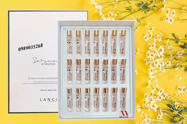 Serum cá hồi Lanci De Saumon của Hàn Quốc. Serum cá hồi Lanci rất tốt trong điều trị nám sạm, nếp nhăn, chữa da khô ráp, sần sùi và ngăn ngừa lão hóa. Chiết xuất cá hồi cùng vàng 24k quý hiếm giúp tái tạo, nuôi dưỡng làn da mịn màng, căng bóng, trắng sáng và trẻ trung rạng rỡ.