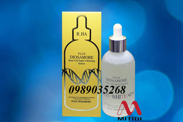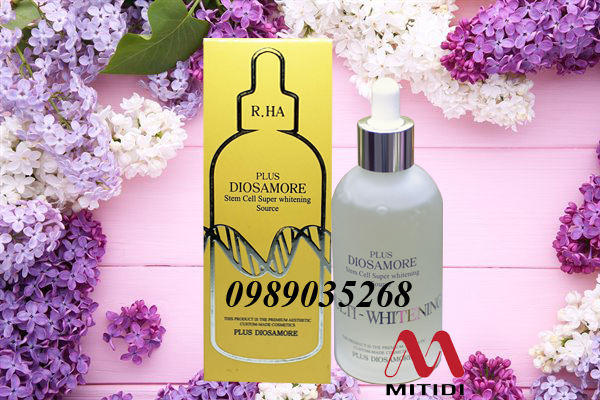Serum tế bào gốc Plus Laksmira Diosamore Stem Cell Super Whitening Source của Hàn Quốc. Sản phẩm 100% thiên nhiên từ tế bào gốc thực vật giúp tái tạo và phục hồi các dấu hiệu tổn thương, lão hóa trên bề mặt da, điều trị hiệu quả nám sạm, sẹo rỗ, nếp nhăn, da sần sùi, chùng nhão,… và mang lại làn da mịn màng, trắng sáng, tươi trẻ chỉ trong thời gian ngắn.