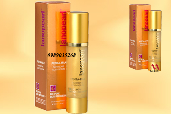 Serum tinh chất vàng nhau thai cừu Lanopearl Penta Max Nanosome Gold của Úc. Sản phẩm chứa công thức chống lão hóa đặc biệt từ tinh chất vàng và nhau thai cừu nguyên chất giúp điều trị hiệu quả các vấn đề lão hóa da như nếp nhăn, nám sạm, đốm nâu, lỗ chân lông to, da xỉn màu, kém săn chắc,...