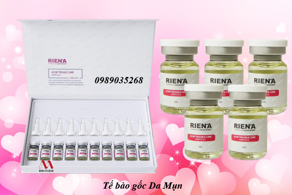 Tế bào gốc thải mụn Rien'a Acne Trouble Care Ampoule của Hàn Quốc. Sản phẩm chứa thành phần thải mụn từ tế bào gốc có tác dụng kiểm soát bã nhờn, kháng viêm, kháng khuẩn, làm dịu vùng da sưng tấy, cải thiện tình trạng mụn nhanh chóng. Đồng thời phục hồi tổn thương trên da, tái tạo làn da khỏe mạnh, săn chắc và sáng mịn.