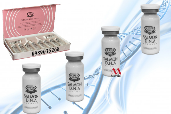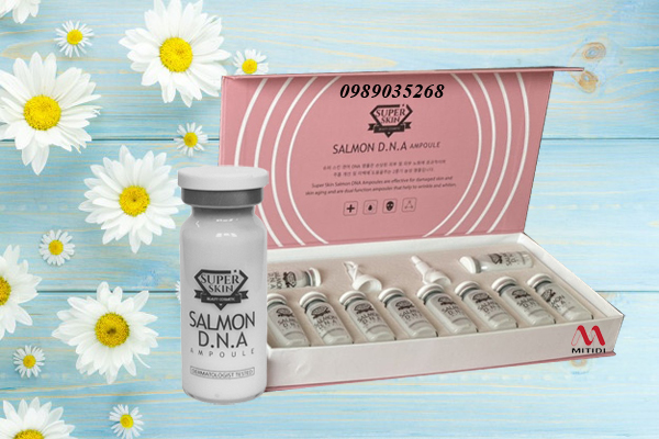 Tế bào gốc cá hồi Salmon DNA Ampoule Super Skin của Hàn Quốc. Tế bào gốc cá hồi Salmon DNA mang lại hiệu quả tốt nhất khi sử dụng trong lăn kim, phi kim hay sau laser để chống lại các dấu hiệu lão hóa.