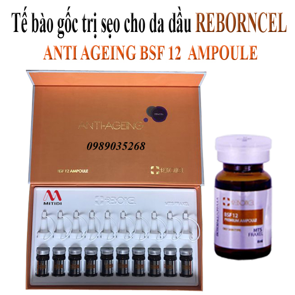 Tế bào gốc trị sẹo trẻ hóa da dầu Reborncell Anti Ageing BSF 12 Ampoule- 1 hộp 10 ống, mỗi ống 8ml