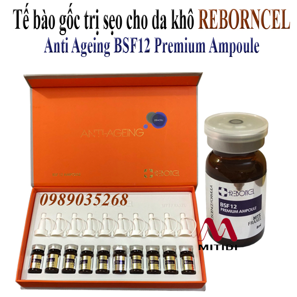 Tế bào gốc trị sẹo trẻ hóa da khô Reborncell Anti Ageing BSF12 Ampoule- 1 hộp 10 ống, mỗi ống 8ml