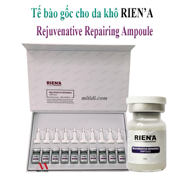Tế bào gốc trị sẹo cho da khô Rien'A Rejuvenative Repairing Ampoule - 1 hộp 10ống, mỗi ống 6ml
