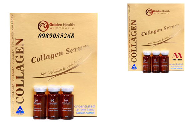 Serum collagen trị nám và trắng da Golden Health của Úc. Sản phẩm bồi đắp tinh chất collagen thiên nhiên nuôi dưỡng da trắng sáng, căng mịn, thổi bay các dấu hiệu lão hóa tổn thương da như thâm nám, tàn nhang, nếp nhăn,… duy trì làn da tươi trẻ theo thời gian.