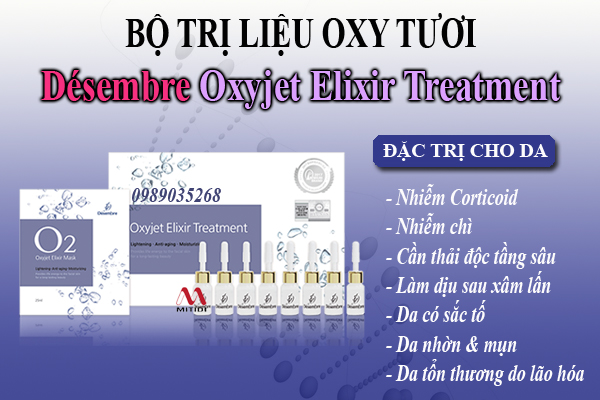 Quá trình cung cấp oxy rất quan trọng cho làn da, giúp cung cấp một lượng lớn oxy và các chất dinh dưỡng cho tế bào da để ngăn ngừa tình trạng lão hóa da giúp da trở nên căng mọng và nhuận sắc. Để cải thiện lại làn da hư tổn, cần phải có một quá trình điều trị từ 5-10 lần với set Oxy tươi Désembre Oxyjet Elixir Treatment.