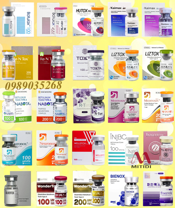 Dưới đây là những loại botox uy tín về chất lượng đang được sử dụng tại nước ta hầu hết có là sản phẩm đến từ Hàn Quốc và Mỹ như: Botox Botulax, Botox Meditoxin, Botox Allergan, Botox Hutox, Botox Neuronox....