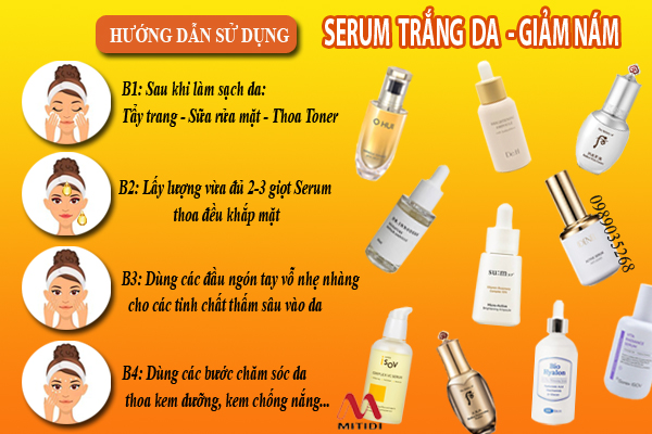 - Bước 2: Lấy 2-3 giọt serum, thoa đều lên mặt, tập trung vào vùng thâm nám.
