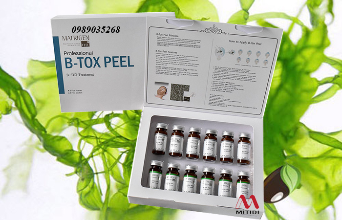 Vi kim tảo biển sillic B Tox Peel chính hãng từ Hàn Quốc. Vi kim tảo biển sillic thay da sinh học giúp loại bỏ cặn bã, vi khuẩn gây mụn, hỗ trợ điều trị mụn và làm da sáng mịn, khỏe mạnh.