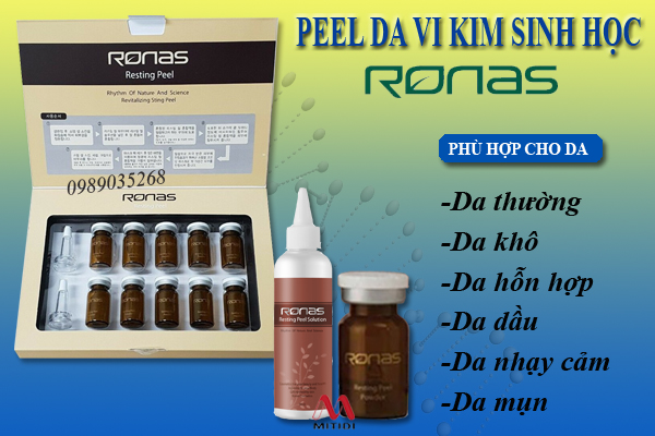Peel da Ronas Resting peel có chiết xuất 100% từ tảo biển sillic quý hiếm và công nghệ vi kim giúp thúc đẩy quá trình thay da sinh học tối ưu. Quá trình này giúp thải độc tố da hiệu quả, đẩy sắc tố melanin lên bề mặt và “lột bỏ” chúng bằng cách loại bỏ lớp tế bào chết già cỗi trên bề mặt thông qua cơ chế “bong da” tự nhiên.