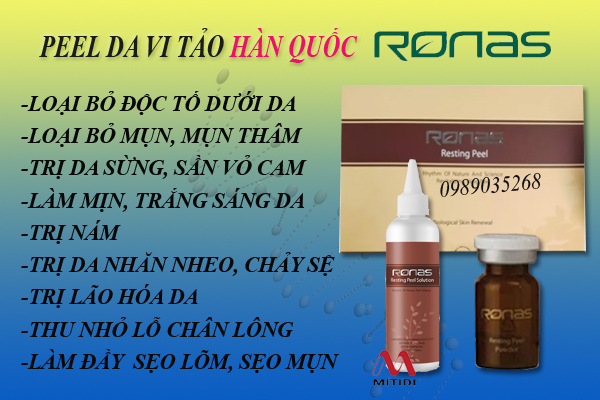 Phương pháp peel da Ronas Resting peel từ Hàn Quốc. Sản phẩm peel da bằng vi kim và tảo biển sillic quý hiếm giúp điều trị nám, tàn nhang hiệu quả, loại bỏ sắc tố trên bề mặt, tăng cường sức khỏe làn da để ngăn ngừa nám tái phát.
