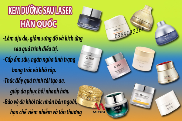 Dưỡng kem Hàn Quốc sau khi bắn laser làm đẹp da, kem giúp thúc đẩy quá trình tái tạo da, kích thích collagen, thay thế tế bào chết già cỗi và hư tổn,… mang lại cho bạn làn da sáng khỏe, mịn màng, căng bóng và tươi trẻ.