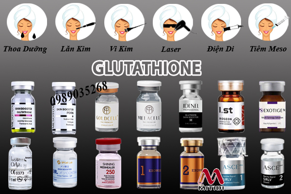 - Dưỡng da bằng Glutathione: Các sản phẩm chăm sóc da như serum, kem dưỡng chứa Glutathione có thể thẩm thấu vào sâu trong da, giúp làm giảm sự hình thành melanin và làm sáng da đều màu.