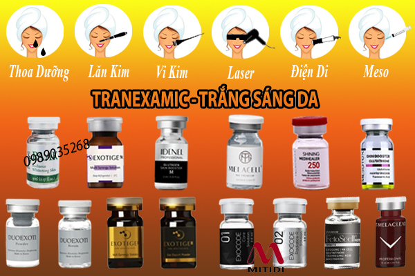 Tiêm meso Tranexamic Acid: Phương pháp này sử dụng các mũi tiêm nhẹ nhàng vào lớp trung bì của da để đưa Tranexamic Acid vào sâu bên trong. Tranexamic Acid, với khả năng ngăn ngừa sự hình thành melanin (sắc tố gây nám), giúp làm sáng da và giảm sự xuất hiện của các vết nám, tàn nhang.