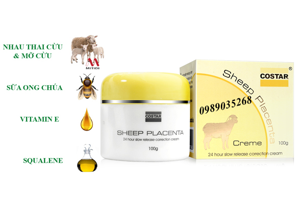 Kem cừu Costar Sheep Placenta Cream của Úc chiết xuất từ nhau thai cừu và mỡ cừu nguyên chất giúp tăng cường hiệu quả dưỡng ẩm, cho da mềm mịn tức thì, ngăn ngừa khô ráp và các nếp nhăn xuất hiện, chống lão hóa và bảo vệ sự tươi trẻ cho làn da.