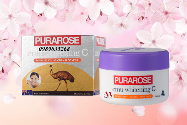Kem đà điểu Purarose Emu Whitening C của Úc. Sản phẩm chiết xuất từ các hoạt chất thiên nhiên cùng tinh dầu đà điểu Emu Oil cung cấp độ ẩm sâu cho da, tái tạo làn da mịn màng, săn chắc, dưỡng trắng da từ bên trong, giúp giảm thiểu các nếp nhăn, cải thiện da xỉn màu, sần sùi,…