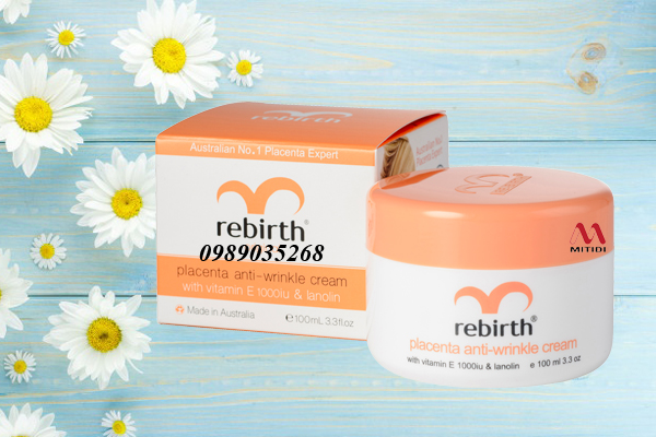 Kem nhau thai cừu Rebirth Placenta Anti-Wrinkle Cream With Vitamin E đã lọt top là một trong những sản phẩm Úc bán chạy nhất tại thị trường châu Á. Kem nhau thai cừu Rebirth tác dụng dưỡng trắng da hiệu quả, xóa mờ các đốm nâu, thâm sạm, tàn nhang trên da, trả lại làn da trắng mịn, căng bóng.