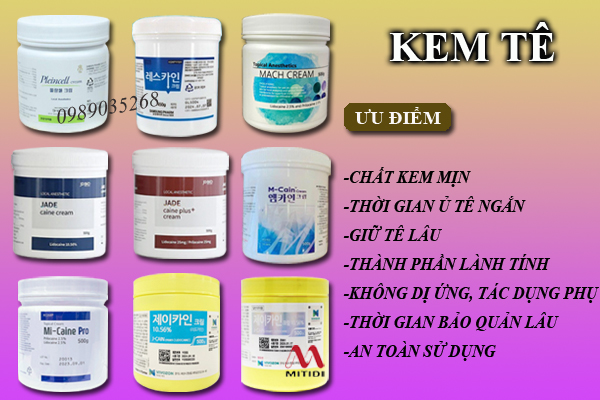 Kem thuốc tê là giải pháp tuyệt vời giúp giảm đau hiệu quả trong quá trình phun xăm thẩm mỹ, xăm nghệ thuật, tiểu phẫu, hoặc tiêm meso, lăn kim, phi kim, laser.... Với những ưu điểm như tác dụng nhanh chóng, an toàn và dễ sử dụng, kem thuốc tê đang ngày càng trở thành sản phẩm không thể thiếu trong các dịch vụ thẩm mỹ. Tuy nhiên, để đảm bảo hiệu quả và an toàn, bạn cần chọn sản phẩm chất lượng, sử dụng đúng cách và tuân thủ các hướng dẫn của nhà sản xuất.