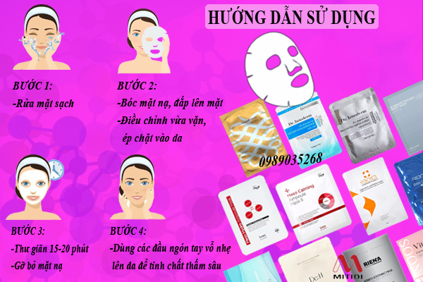 - Thời gian sử dụng: Đắp mặt nạ giấy theo hướng dẫn trên bao bì, thường từ 15-20 phút. Tránh để mặt nạ quá lâu để không làm da bị khô.
