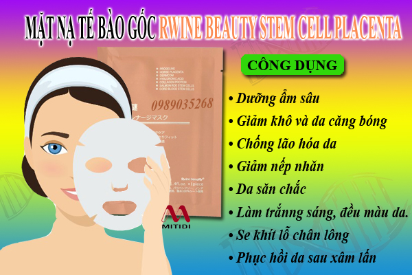 Mặt nạ nhau thai cuống rốn Nhật Bản Rwine Beauty Stem Cell Placenta Mask chứa các thành phần dưỡng chất giúp tăng cường độ đàn hồi và săn chắc cho da, làm mờ các nếp nhăn, làm da trở nên mịn màng, giúp làm sáng da, bảo vệ da khỏi tác động của môi trường và cung cấp dưỡng chất thiết yếu cho làn da khỏe mạnh.