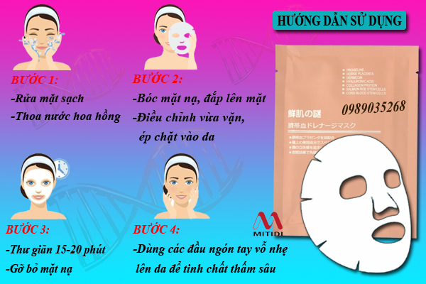 Cách sử dụng mặt nạ nhau thai Nhật Bản cũng rất đơn giản. Trước khi áp dụng mặt nạ, hãy làm sạch da mặt bằng sữa rửa mặt nhẹ nhàng. Sau đó, mở gói mặt nạ và đặt nó lên khuôn mặt, điều chỉnh sao cho phù hợp với hình dạng da. Để mặt nạ trên mặt trong khoảng 15-20 phút để dưỡng chất thẩm thấu sâu vào da. Trong thời gian chờ đợi, bạn có thể thư giãn và thưởng thức những phút giây thư giãn. Sau đó, gỡ bỏ mặt nạ và vỗ nhẹ để da hấp thụ dưỡng chất còn lại.