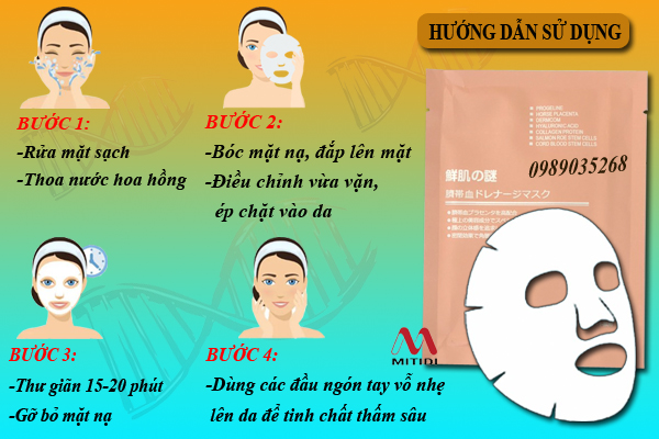Cách sử dụng mặt nạ nhau thai Nhật Bản khá đơn giản. Trước khi áp dụng mặt nạ, hãy làm sạch da mặt bằng sữa rửa mặt nhẹ nhàng. Sau đó, mở gói mặt nạ và đặt nó lên khuôn mặt, tạo sự phủ đều trên da. Hãy chắc chắn rằng mặt nạ không che phủ quá nhiều khu vực nhạy cảm như mắt và miệng. Để mặt nạ trên mặt trong khoảng 10-20 phút để dưỡng chất thẩm thấu sâu vào da. Sau đó, gỡ bỏ mặt nạ và vỗ nhẹ để da hấp thụ dưỡng chất còn lại trên mặt.