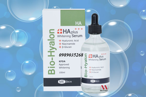 Serum dưỡng ẩm dưỡng trắng HA Plus Bio – Hyalon Whitening của Hàn Quốc giúp kích thích sản sinh collagen giúp da mình săn chắc hơn, tươi sáng hơn, giảm các nếp nhăn li ti trên trán và đốm nám 2 bên má.