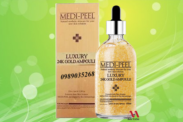 Serum tinh chất vàng 24k Medi Peel Luxury 24K Gold Ampoule của Hàn Quốc chống lại các nếp nhăn lão hóa, tái tạo độ đàn hồi và săn chắc cho làn da, giúp ngăn ngừa lão hóa sớm, đẩy lùi nám sạm, nếp nhăn, chăm sóc làn da luôn mịn màng, tươi trẻ.