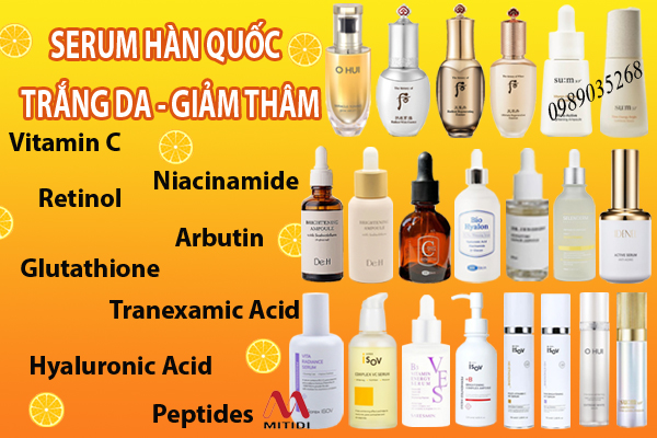 Serum trắng da giảm thâm của Hàn Quốc là giải pháp hiệu quả giúp cải thiện làn da, làm sáng và giảm thiểu tình trạng thâm sẹo do mụn, mang lại làn da đều màu và rạng rỡ.