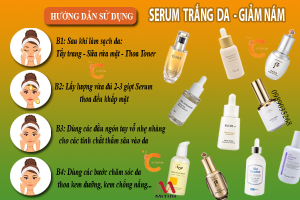 - Nếu dùng serum vào buổi sáng, luôn thoa kem chống nắng (SPF 30 trở lên) để bảo vệ da khỏi tia UV – yếu tố làm giảm hiệu quả làm sáng