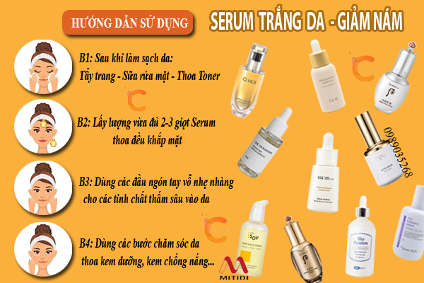 - Nếu dùng serum vào buổi sáng, luôn thoa kem chống nắng (SPF 30 trở lên) để bảo vệ da khỏi tia UV – yếu tố làm giảm hiệu quả làm trắng