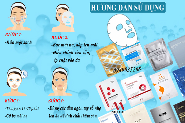 Đắp Mặt Nạ: Áp dụng mặt nạ lên da và để trong thời gian quy định theo hướng dẫn của sản phẩm. Tránh chà xát hoặc kéo căng da trong quá trình đắp.