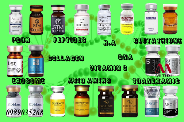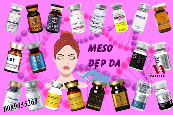Một trong số sản phẩm dùng Tiêm vi điểm Meso được ứng dụng công nghệ chiết xuất từ tinh chất thiên nhiên, chứa nhiều chất tế bào gốc Exosome, DNA, PDRN, Hyaluronic Acid, Glutathione, Tranexamic Acid, Collagen,Vitamin C, Peptides, Acid Amins....giúp cho làn da căng bóng, sáng mịn và tươi trẻ, giúp tăng cường sức đề kháng làn da, thải độc da, kháng viêm, tạo lớp màng bảo vệ da khỏi tác hại ánh nắng mặt trời để duy trì làn da căng bóng, trắng sáng, tươi trẻ dài lâu.