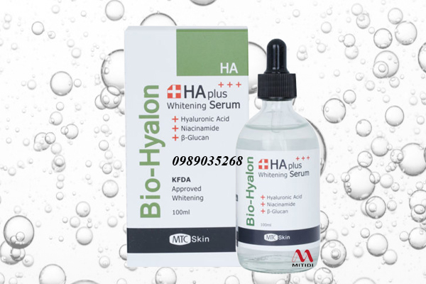 Tinh chất cấp ẩm HA Plus Whitening Bio Hyalon chứa Ascorbic Acid vitamin C, Niacinamide chống oxy hóa mạnh vừa giúp dưỡng trắng, trị thâm, vừa chống lão hóa.