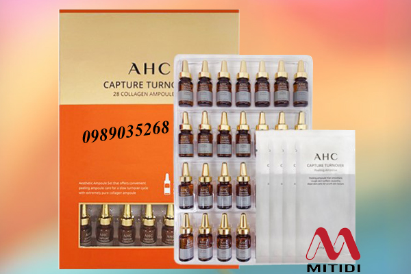 Tinh chất collagen Hàn Quốc AHC Capture Turnover 28 Collagen Ampoule Set giúp bù đắp sự thiếu hụt collagen ở giai đoạn lão hóa và tái sinh tế bào mới tươi trẻ hơn, mang đến hiệu quả trắng da, giảm thâm sạm nám, xóa nhăn, căng mịn da hiệu quả.
