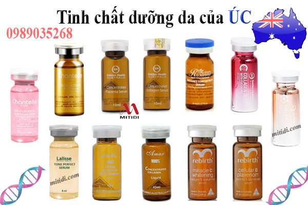 Tinh chất dưỡng da của Úc có công dụng chống lão hóa, giảm nhăn, căng da, trị thâm nám, nếp nhăn, sẹo rỗ... chuyên dùng trong liệu trình kết hợp laser và lăn kim, vi kim, phi kim ... trong các trung tâm thẩm mỹ.
