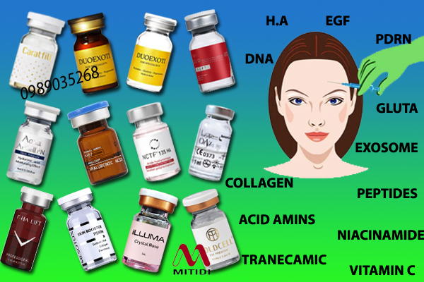 - Hoạt chất kích thích mọc tóc (Biotin, Minoxidil (ít dùng dạng tiêm), Peptides, Vitamin nhóm B...): Dùng cho liệu trình điều trị rụng tóc, hói đầu.