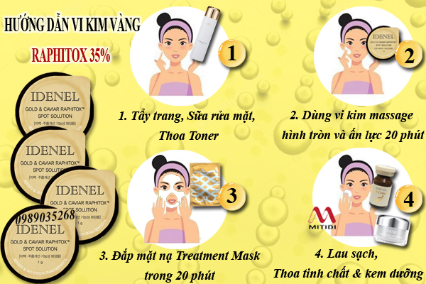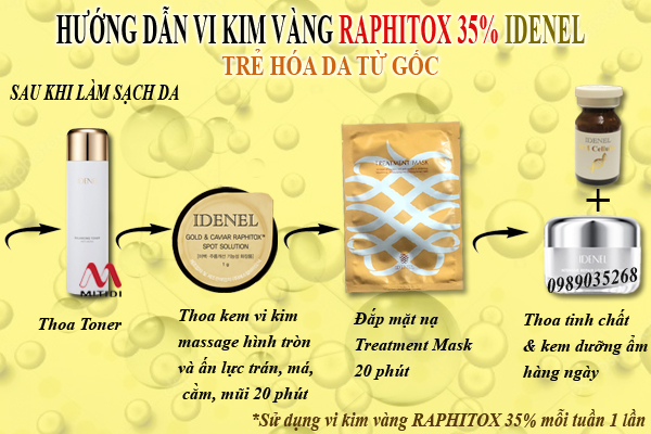 Vi kim sinh học Hàn Quốc Idenel Gold Cavia Raphitox . Vi kim sinh học Hàn Quốc Raphitox là công nghệ đột phá trong điều trị lão hóa da, giúp xóa nhăn, căng da, chữa da nám sạm, lỗ châm lông to, da sần sùi, nhăn nheo, khô ráp,..