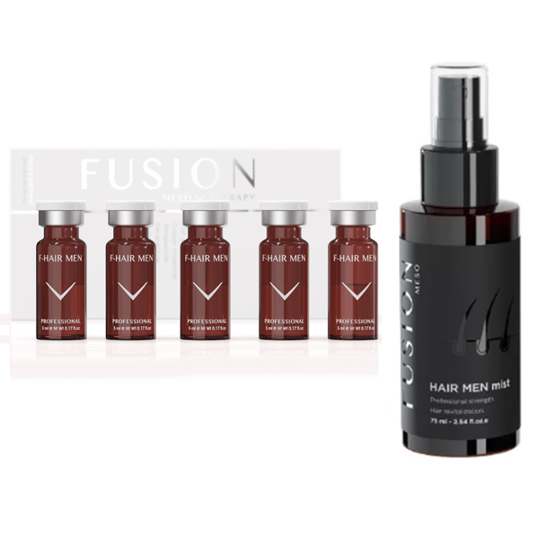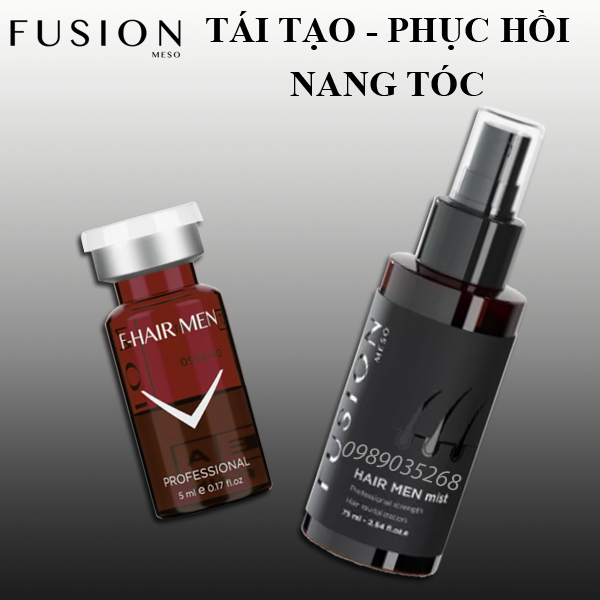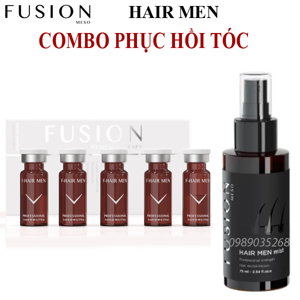 Combo phục hồi tóc Fusion Meso Hair Men Mist + F Hairmen nuôi dưỡng và phục hồi các nang tóc, kích thích mọc tóc mới và ngăn ngừa rụng tóc thêm.