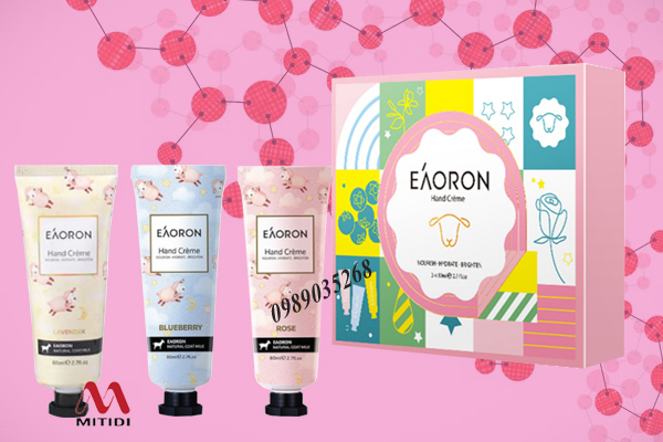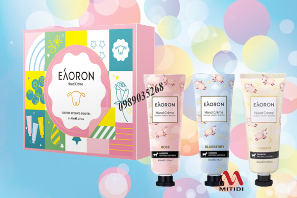 - Set 3 kem dưỡng da tay Eaoron có 3 mùi: Hoa hồng, việt quất, lavender, đều được nhiều người yêu thích.