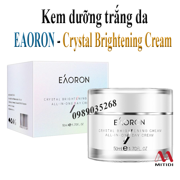 Kem dưỡng trắng da Eaoron Crystal Brightening Cream là một loại kem All-in-One Day có thể thay thế thói quen chăm sóc da buổi sáng hàng ngày của bạn - đó là một loại kem dưỡng ẩm, làm da trắng sáng và làm đẹp da.