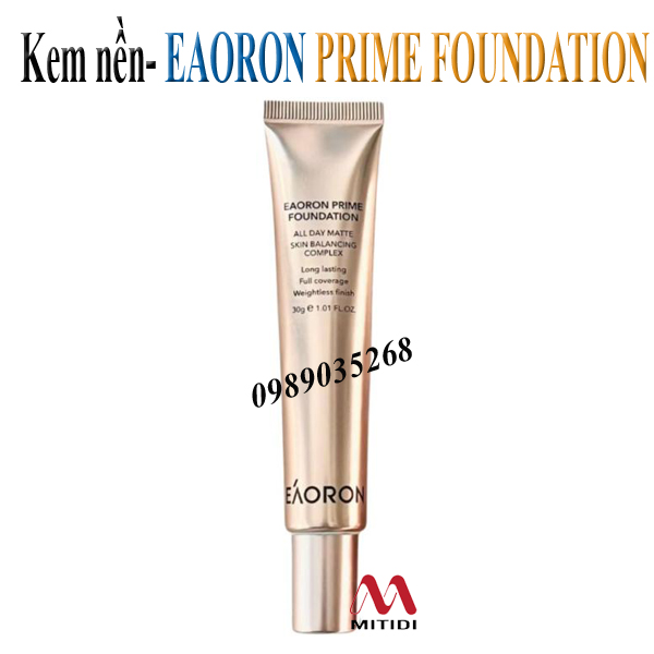Kem nền mịn nhẹ, kiềm dầu Eaoron Prime Foundation có khả năng kiềm dầu cho lớp nền mịn lì tự nhiên, đồng thời che phủ tốt mọi khuyết điểm trên bề mặt da và che phủ hoàn hảo lỗ chân lông. Kem nền Eaoron Prime Foundation có tông màu phù hợp với mọi tông da phụ nữ Việt Nam.