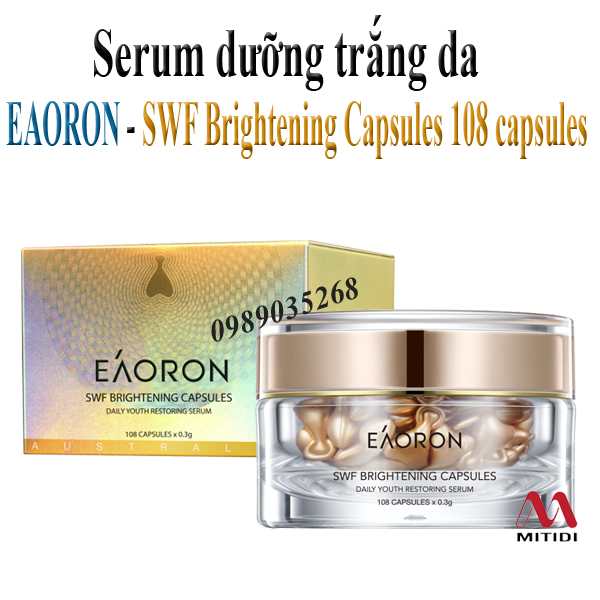 Viên nang làm trắng da EAORON SWF Brightening Capsules 108 capsulesphục hồi huyết thanh Bị ảnh hưởng bởi lão hóa, ô nhiễm và tia cực tím, da từ từ xuất hiện các dấu hiệu lão hóa và da xỉn màu. Đặc biệt chiết xuất tự nhiên đặc biệt của Úc và yếu tố làm trắng da SWF thúc đẩy quá trình phục hồi tự nhiên của da, làm giảm sự xuất hiện của các dấu hiệu lão hóa cho làn da săn chắc, trắng sáng, khỏe mạnh.